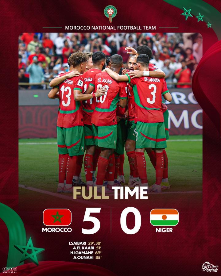 世预赛摩洛哥5-0横扫尼日尔,球队提前晋级美加墨世界杯。